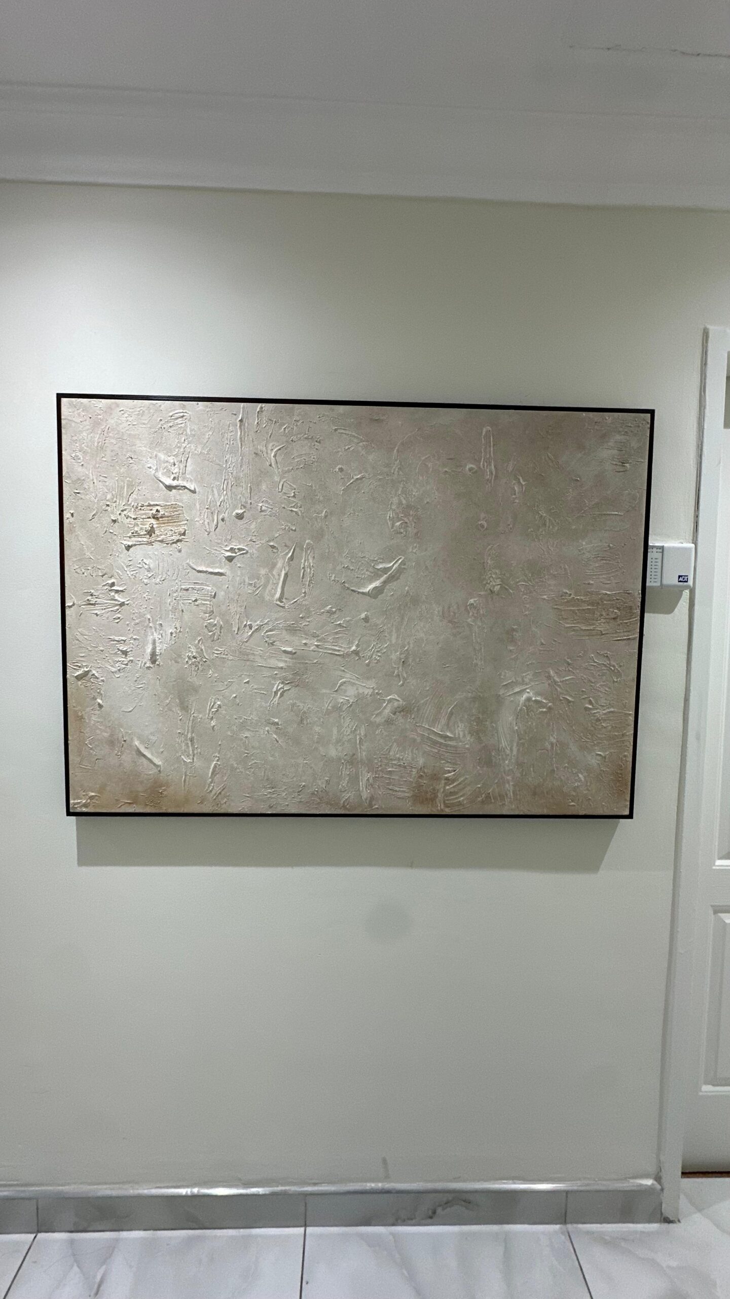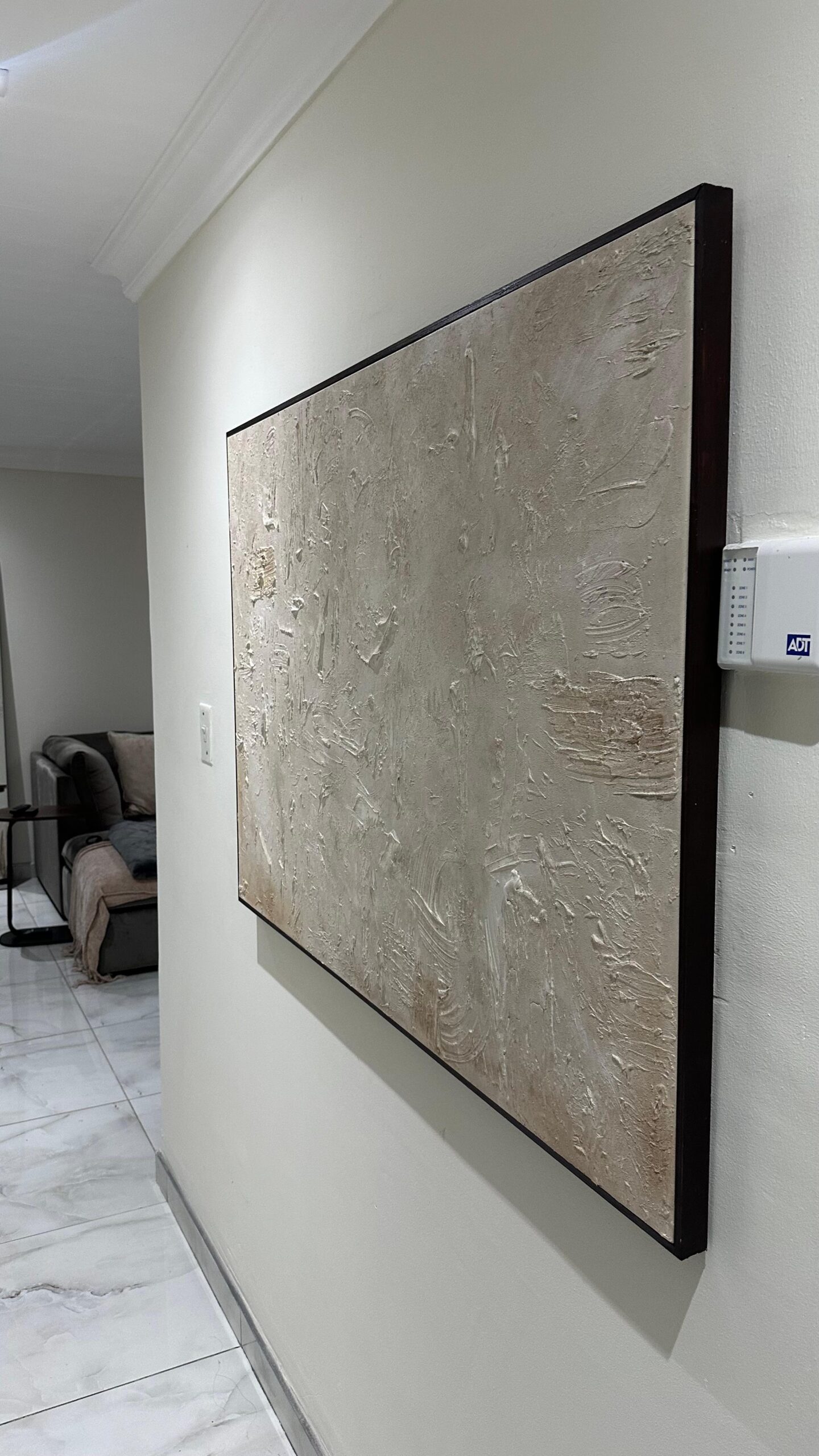 Handcrafted textured artwork on premium stretched canvas, framed in solid wood and delivered ready to hang. Available in A00, A0, A1, A2, and custom dimensions.