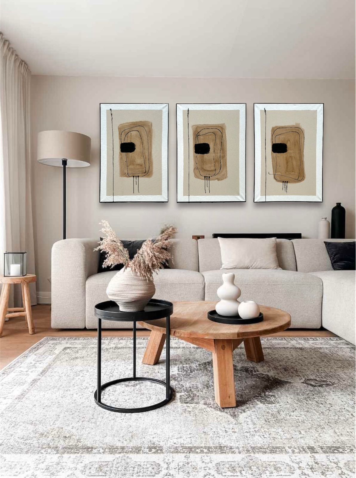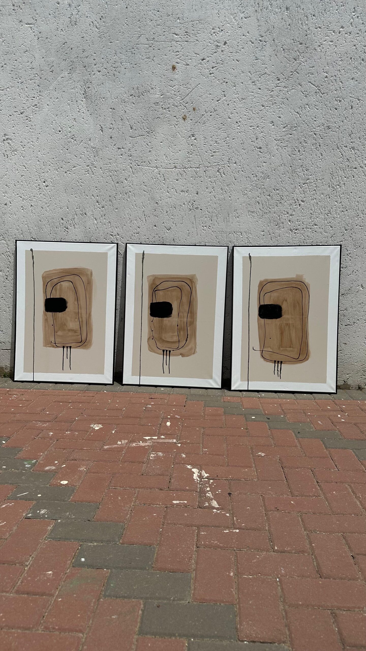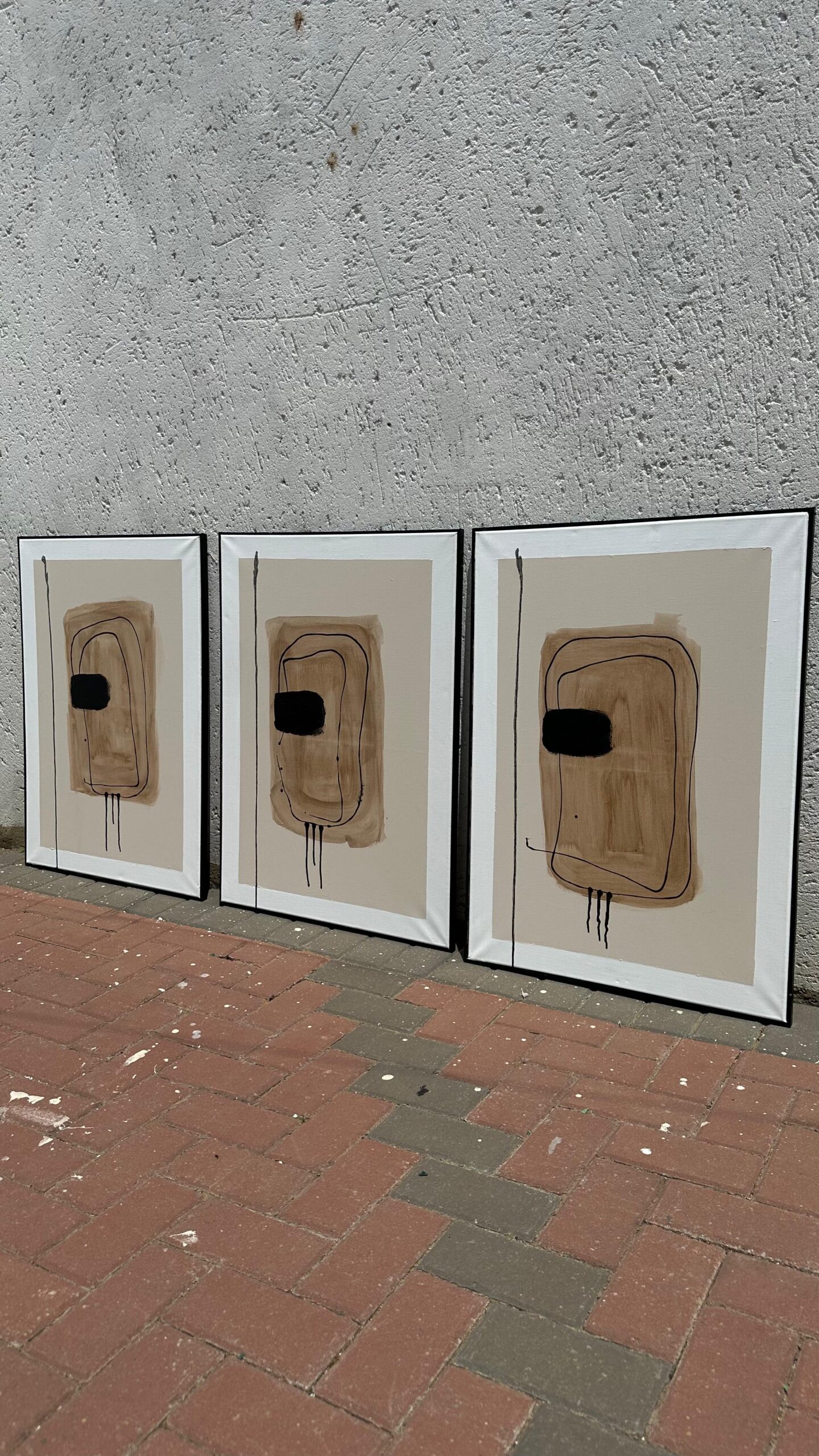 Curated set of three textured artworks on premium stretched canvas, framed in solid wood for a refined finish. Delivered ready to hang to instantly transform your space. Available in A00, A0, A1, A2, and custom dimensions.
